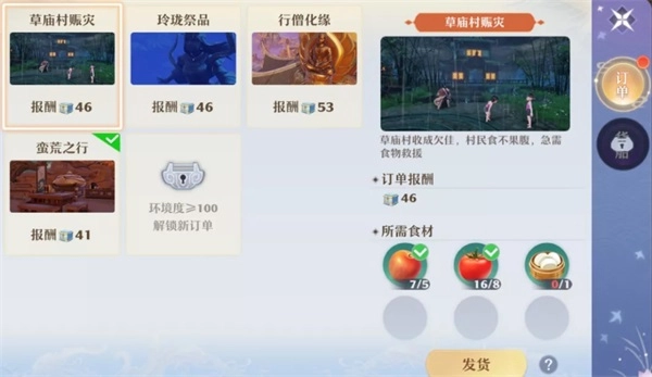 一开始,我们手里只有三个订单,不过随着环境度的提高,就能解锁新订单,这样获取仙府物资的速度也会更快。