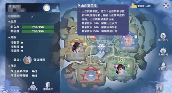 仙府的诞生晚于山庄,山庄的繁荣度在仙府系统中占据核心地位。唯有不断提升山庄的繁荣度,仙府才能解锁更多新颖玩法,玩家也能从中获得更丰厚的收益。