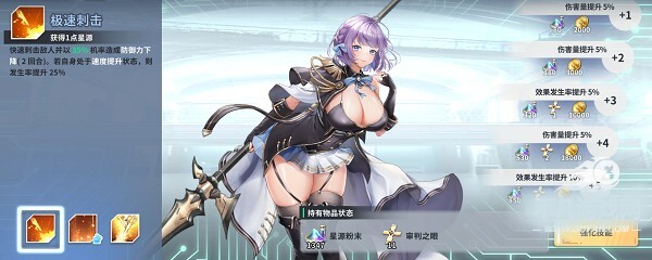 1、【收集与养成】通过抽取卡牌和完成任务,收集众多角色卡牌,并通过培养提高他们的属性和技能;