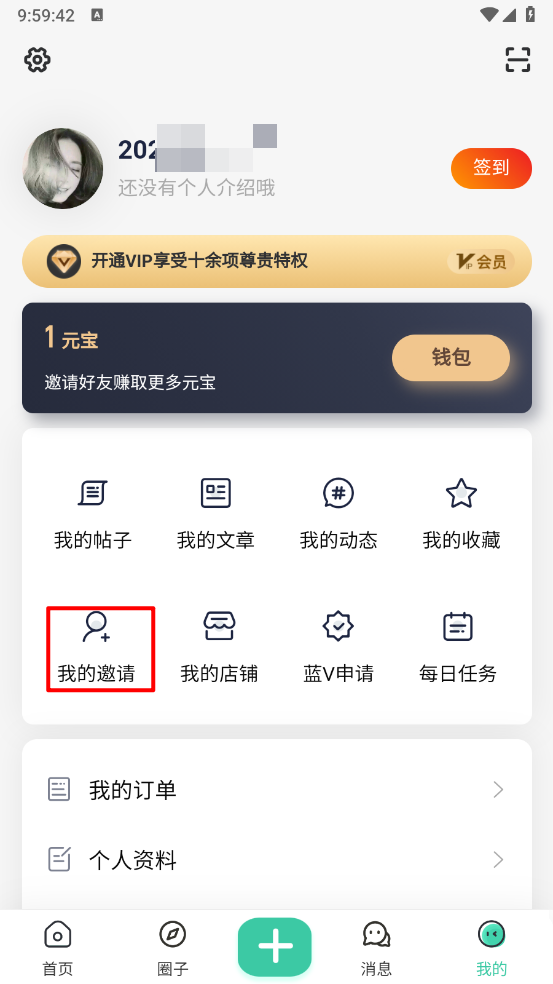 2、然后在我的页面点击"我的邀请"。