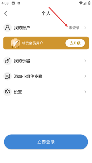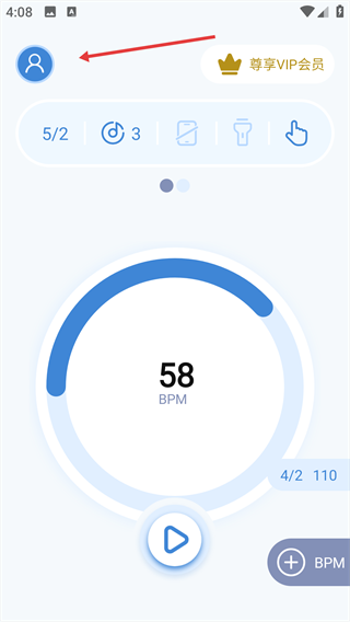 1、打开节拍器主界面后,点击左上角的人物图标,即可进入个人功能页面。