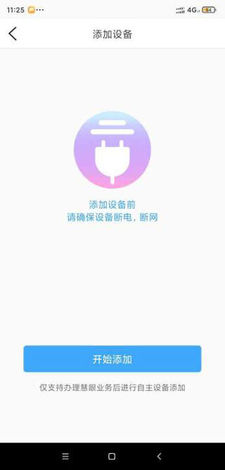 2、点击“开始添加”选项并依据提示进行操作,需要注意的是,要先把摄像头的网络连接断开,同时关闭其电源。