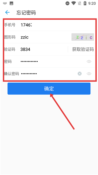 在忘记密码页面,需依次填写【手机号】【图形码】【验证码】,接着设置新密码并确认,之后点击【确定】按钮,即可完成密码重置操作。