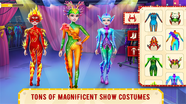 创意十足的演出设计:游戏的演出设计充满创意,玩家可以自由搭配演员和动物,设计出令人惊艳的演出,增加了游戏的娱乐性。
