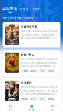 1、软件根据不同的影视类型提供的热度排行榜单,不定期更新。