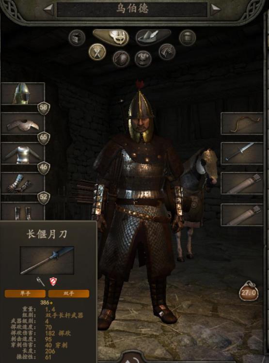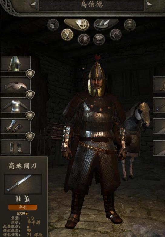 护具主要包含头盔、铠甲、靴子与手套这四个类别。所有护甲都会提升累赘度,该数值会对人物和战马的奔跑速度以及跳跃表现产生影响,其防护范围则涵盖头部、身体和腿部三个区域。护甲的核心属性是防御力,主要作用是降低挥砍类型的伤害。此外,部分护甲设有最低力量门槛,若使用者的力量未达到对应要求,将无法穿戴这类装备。