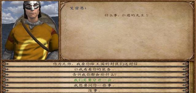 1、打开骑马与砍杀战团,进入游戏后完成收集龙旗任务,返回主城后与龙旗NPC对话,