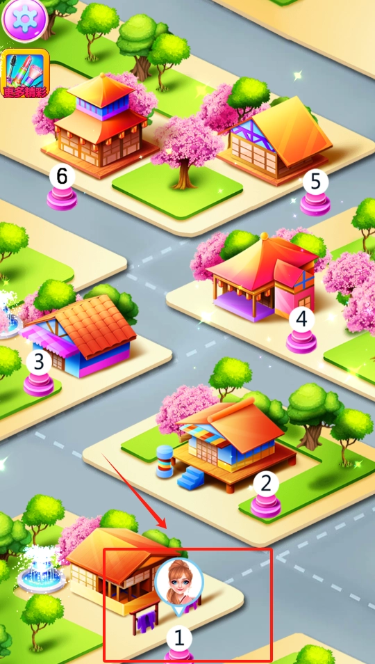 3、滑动屏幕逛小镇,点房屋头像框探索不同场景。