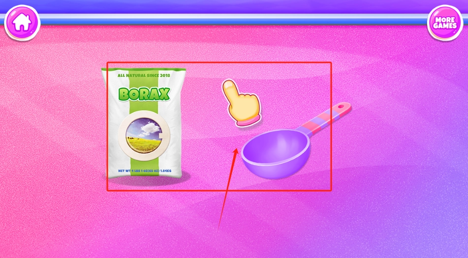 2、按照红框提示,先用勺子取硼砂粉,箭头会告诉你加多少量。