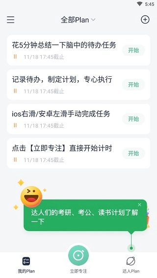 考派(原Plan+)是一款助力提升专注力的时间管理工具,适用于学习、工作等多种场景。你可以在线规划个人任务,借此培养自律习惯,更高效地推进计划进程;软件操作简便易上手,全程干扰,能有效提升你的办事效率。此外,你还能加入学习小组,与学霸在线轻松交流,解决各类疑问;平台还提供海量学习资料,帮助你针对性巩固知识薄弱点。