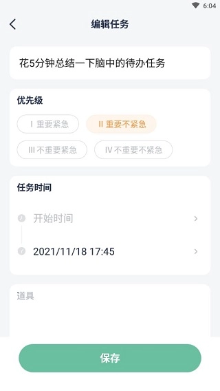 4、在第一栏里用5分钟时间总结闹钟的待办事项,在此过程中,你还能设置优先级、任务时间、专注时长和休息时间等内容。