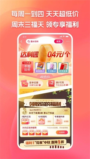 1、超值福利:平台优惠活动丰富多样,限时秒杀、1元抢购持续进行,还有摇一摇互动,食品生鲜最低1元起购;