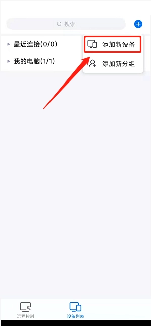 2、然后进入设备列表界面,点击页面右上角【+图标】,如下图所示。