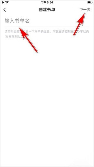 4、输入书单名后,点击右上角下一步的按钮即可创建书单。