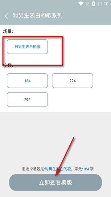 5、点开模板可以查看场景,字数,可立即查看模板。