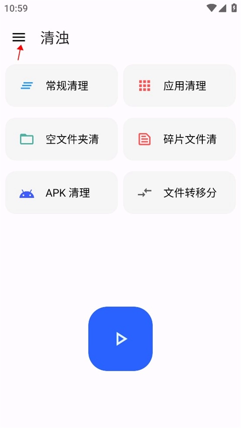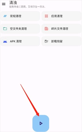 进入软件后,点击页面中间的按钮就能启动垃圾扫描;扫描结束后,再次点击蓝色按钮即可完成清理操作。