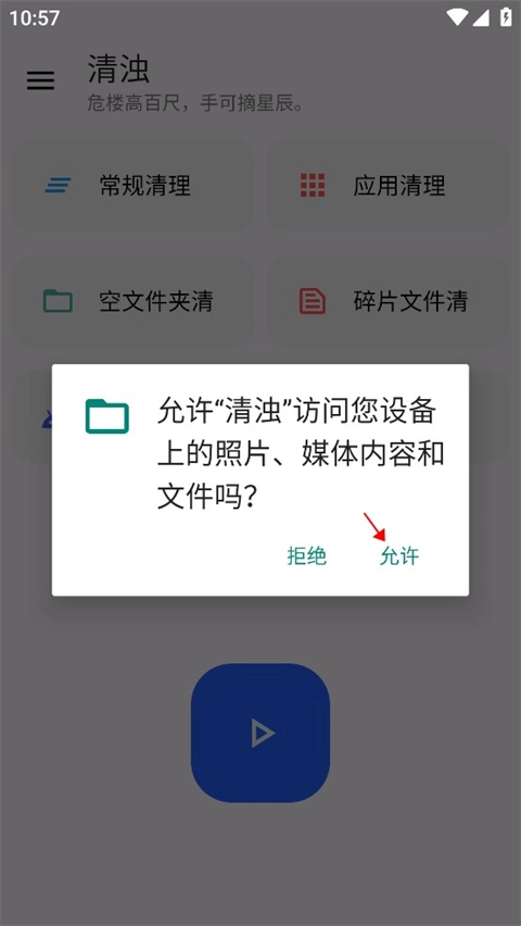1、首次使用清浊,需要给软件授予权限才可进行下一步;