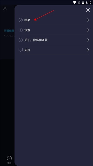 点击右上角的图标后,下方会显示历史检测网速的结果,此时点击“结果历史”即可。