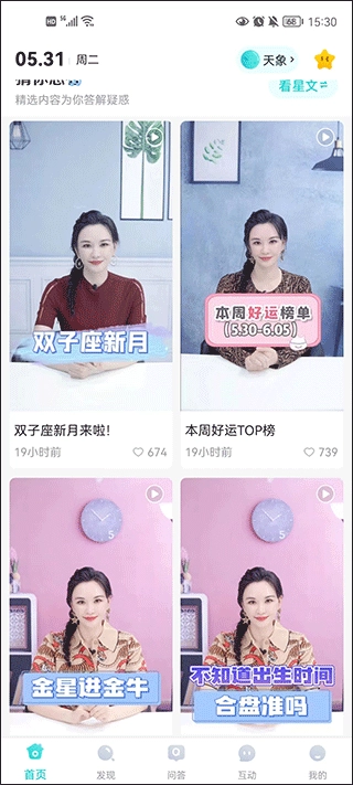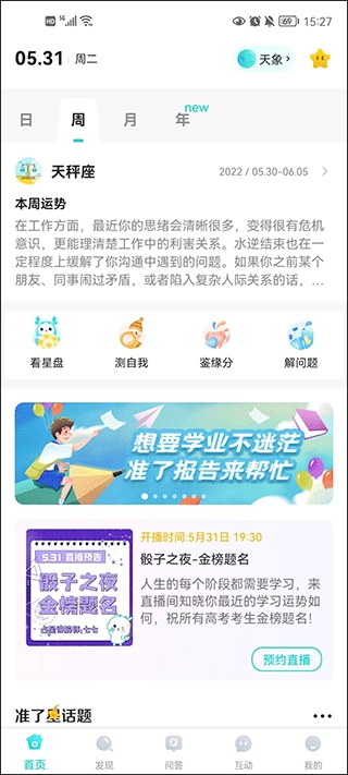 3、在发现板块里,你不仅能查看自己星座的日运、月运和年运,还可以进行心理测试等活动。