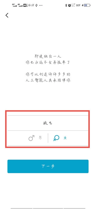 3、为小岛取完名字后,你需要给自己也取一个名字并选择自己的性别