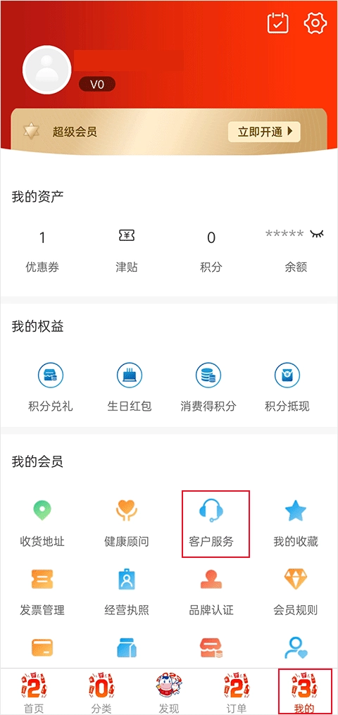 2、或者在我的功能模块,点击客户服务;