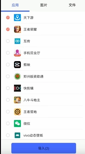 3、选择“天下游”和“王者荣耀”,点击“导入”。
