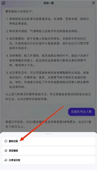 3、还可以选择重新回答,人工智能会重新思考给出不一样的答案,对于满意的回答也可以分享给他人