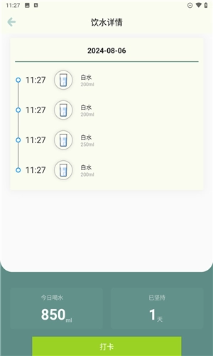 3、点击主界面上的“喝水”按钮,每喝一次水就能一键完成打卡。你还可以挑选不同的饮品类型(比如温水、果汁、牛奶之类)来做详细记录,这样会更贴合你实际的饮水习惯。