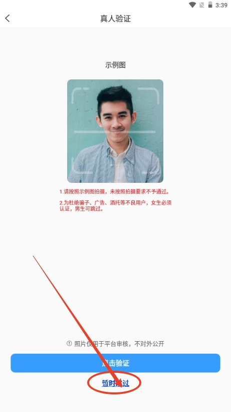 7、可以选择真人认证,或者是暂时跳过;