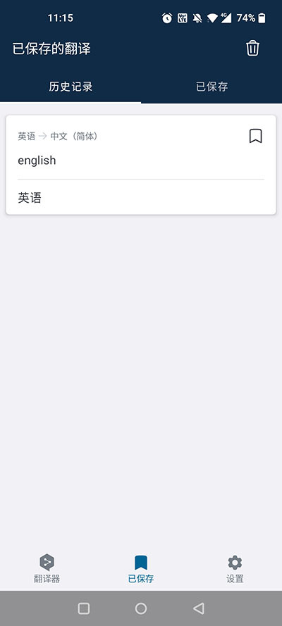 3、可以在“已保存”页面中查看之前翻译的内容。