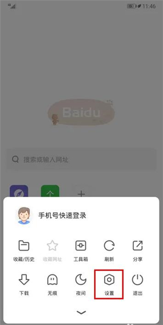 在弹出的选项中,选择“设置”进入设置界面。