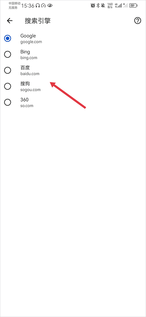 7、然后切换为谷歌搜索引擎即可,当然你也可以切换为其他搜索引擎使用