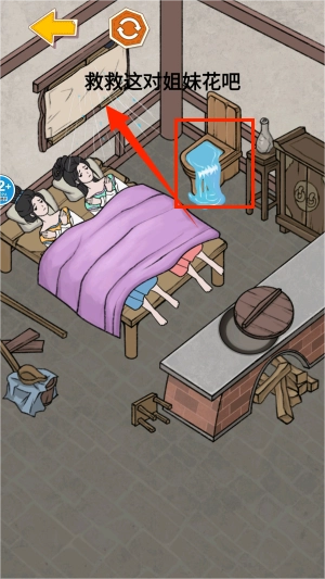 2、在模式菜单中选中“抱团取暖”选项后,系统会加载出需要帮助的双生姐妹角色场景。