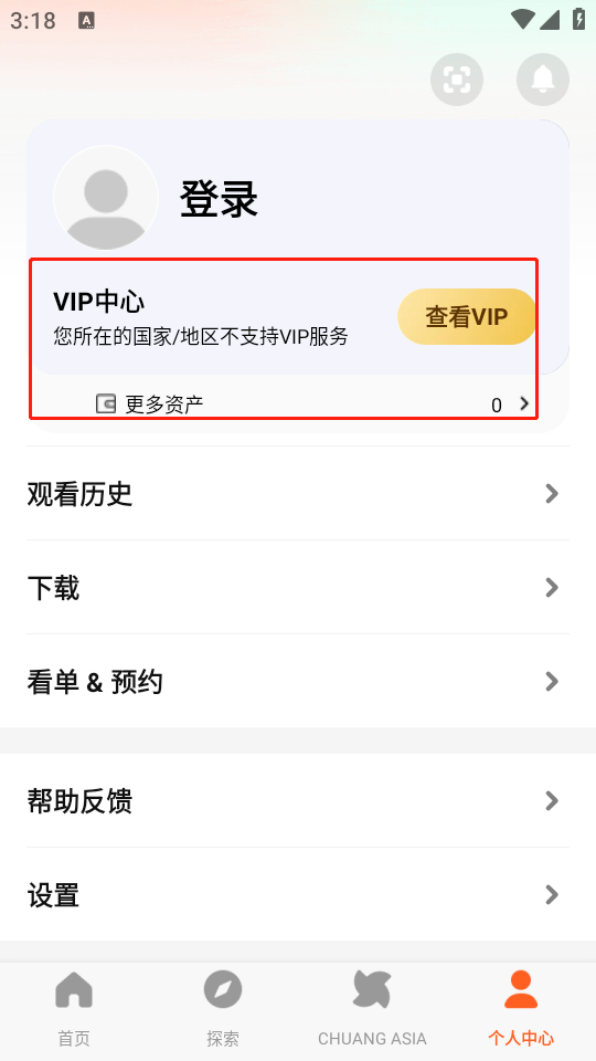2、登录账号后可以看到“您所在的国家/地区不支持VIP服务”。