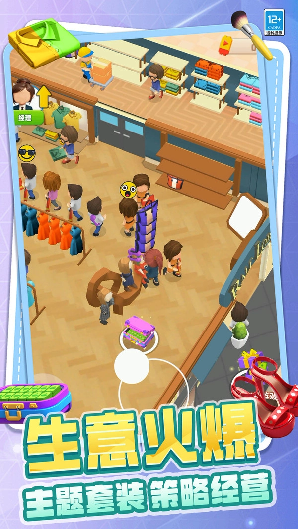 《时尚宠儿》是一款充满卡通色彩的经营策略游戏。在游戏中,你需要凭借出色的视觉敏锐度来捕捉客人的需求——无论是什么类型的产品,都能为你创造收益。你可以精心装扮自己的店铺,并逐步将其扩大;店里的服装始终保持着靓丽的风格。通常情况下,游戏会设置任务指标,只有完成对客人的正常售卖,才能获得源源不断的财富。而这一切,只需通过简单的手指点击操作即可实现。
