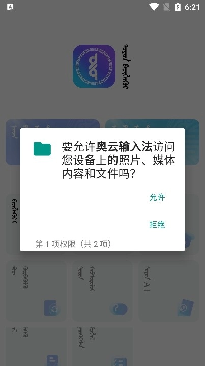 2、进入软件后同意奥云输入法允许访问权限