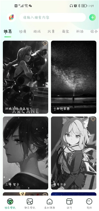 【动态壁纸】移动的视觉宝库,壁纸精致且风格多样,涵盖二次元动漫、热门游戏、高清风景、可爱萌宠、充满科技感的赛博朋克等类型,助你轻松随心切换壁纸