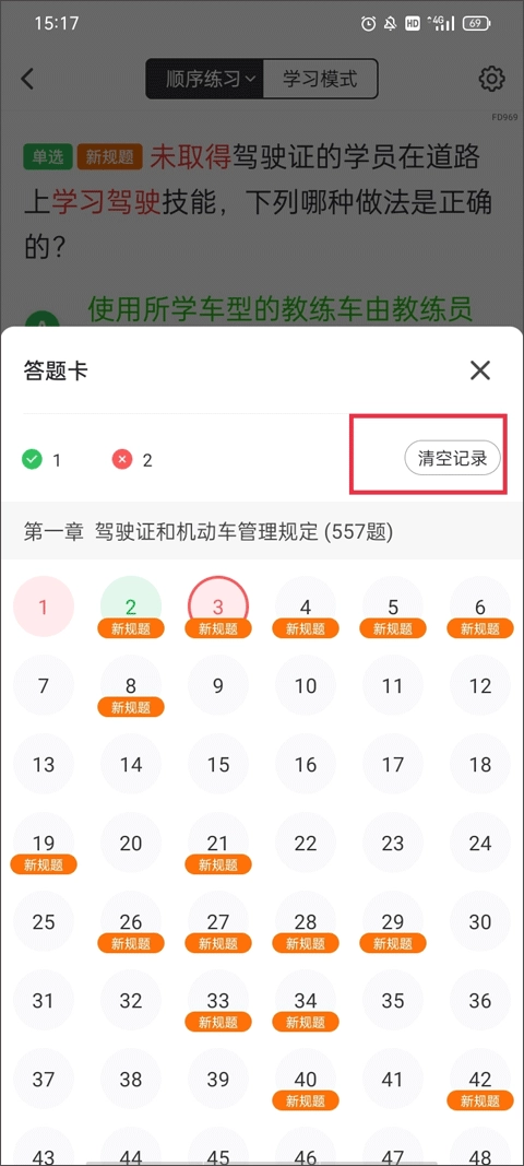 3、这时页面上弹出一个提示“您确定要清空当前做题记录吗?”,点击清空按钮。