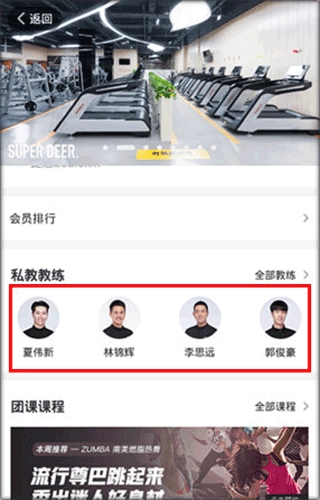2、接着进入到健身房的详情界面,在该界面选择一位私教教练。
