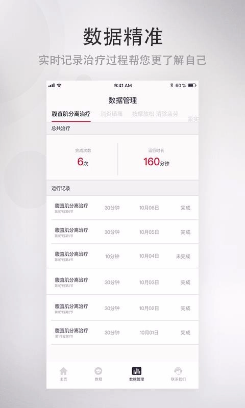 便捷高效的使用体验:平台支持在线观看教学视频,用户可随时查阅教程,加上友好的界面与简单的操作,让居家自我管理和训练变得轻松简单。