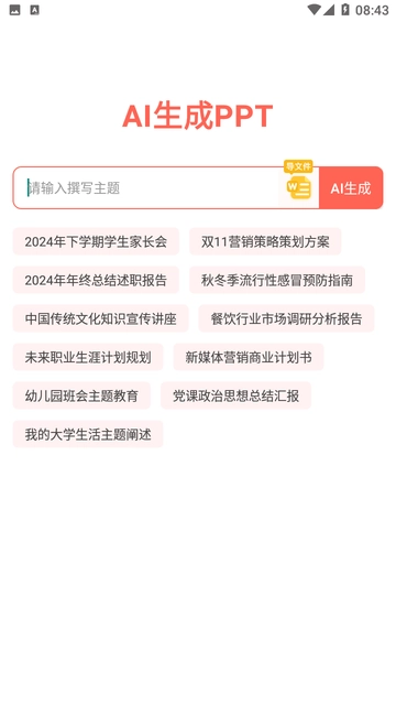 PPT一键制作是一款支持自由创作各类PPT的软件,丰富多样的模板资源。用户只需挑选心仪的模板,在对应位置填入所需文字,即可生成精美的PPT文件。其操作流程简洁易懂,即使是零基础的新手也能轻松上手。