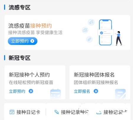 2、点击首页的流感疫苗接种预约,然后选择要接种的类型;
