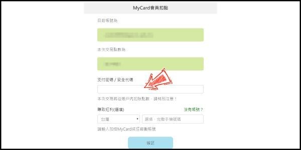 5、登录MyCard会员账号,输入支付密码,手机信息为选填项,填写完成后点击确认按钮,即可完成此次交易。