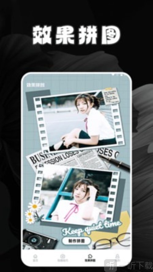 3. 拼图功能支持用户将多张照片合并,并且能够自定义背景、边框等元素。