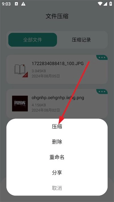 2.然后点击要压缩的文件右上角的【菜单】图标。