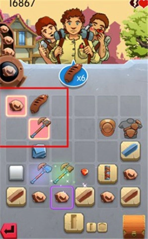 2、香肠烤制好后,粉红色方块会消失。接下来要合成铜矿,再烤一根香肠。也就是说,玩家得至少做出三把武器,才能顺利通过这一关。