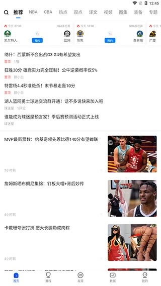 1、球迷屋,进入软件【首页】之后,我们就能在这里浏览各类篮球体育的资讯。