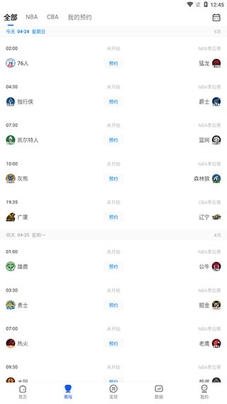1、NBA赛程主要整合了季前赛、NBA常规赛、季后赛等各类赛事信息,用户通过预约功能,能够实时获取比赛动态推送,从而不错过精彩赛事。