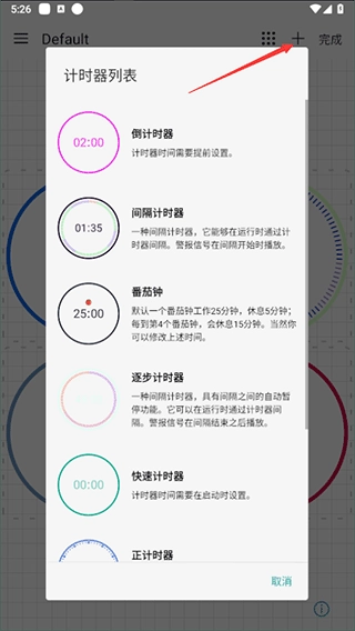 1、添加计时器时,直接点击“+”号按钮,待弹出计时器列表后,从中选择想要添加的计时器即可完成操作。