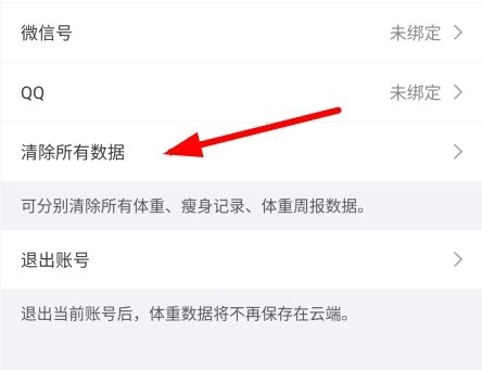 3、在这里可以清除所有体重数据、所有饮食/运动、体围记录和清除所有体重周报。
